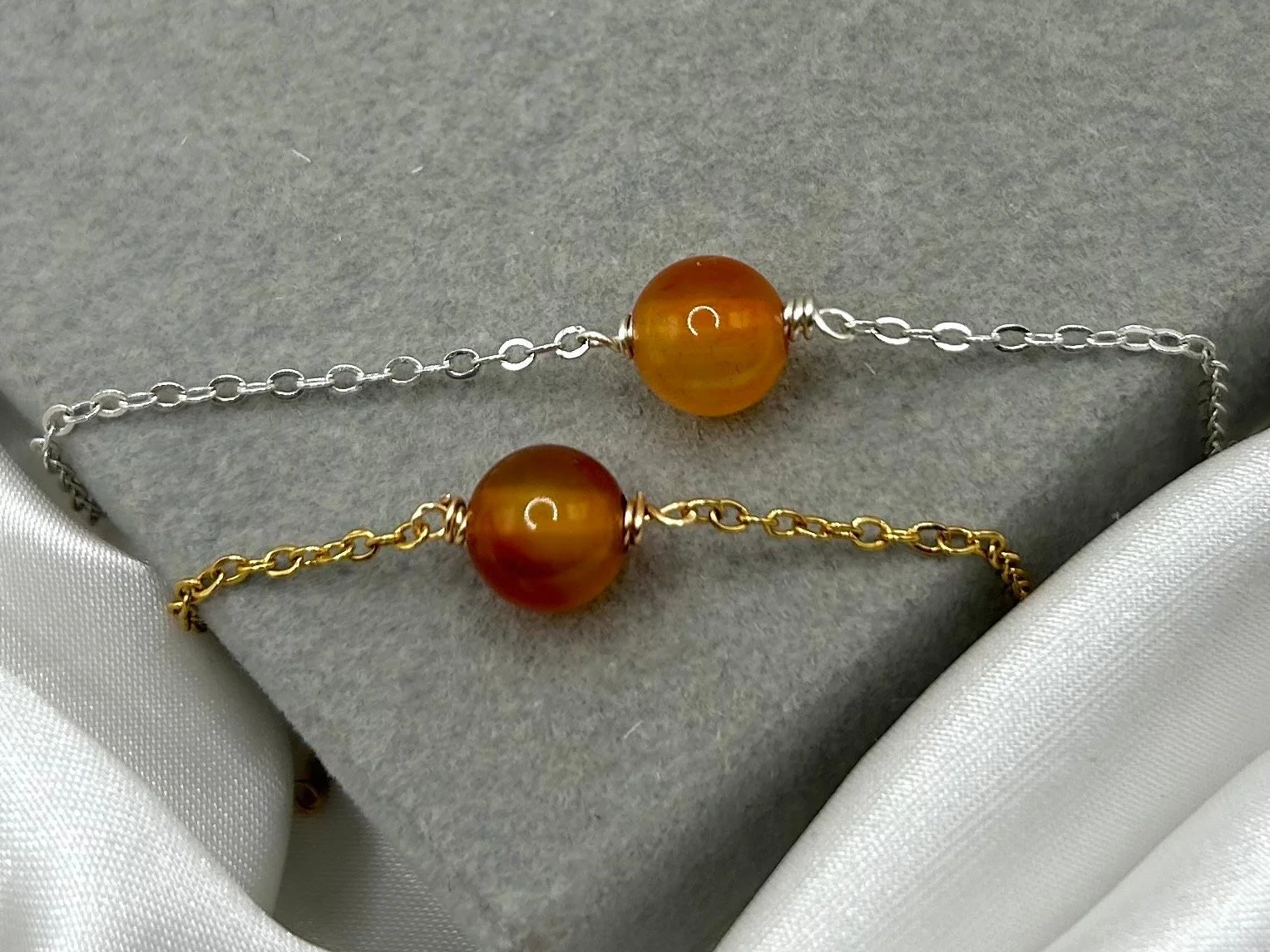 The Tiny Beaded Carnelian Bracelet - Gold Silver