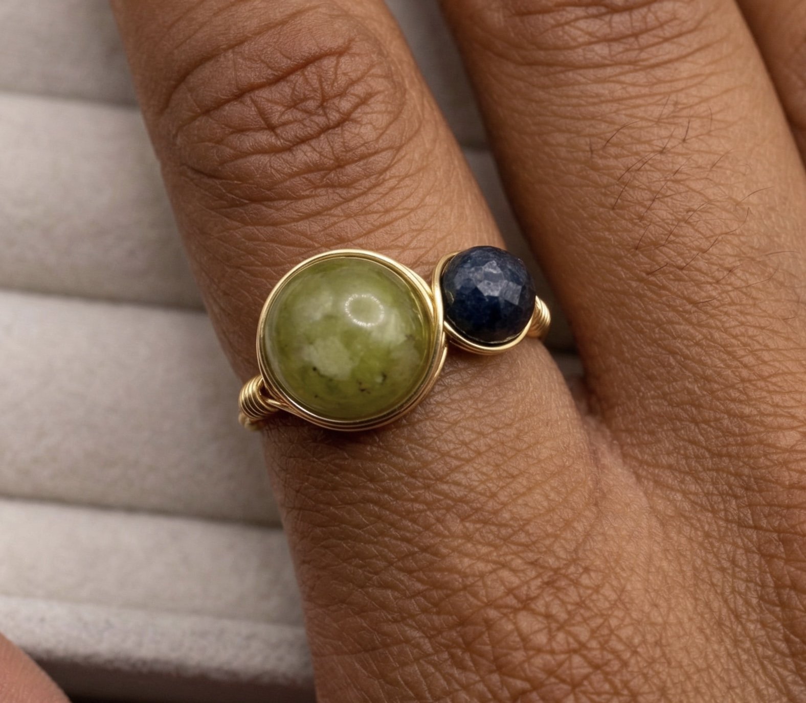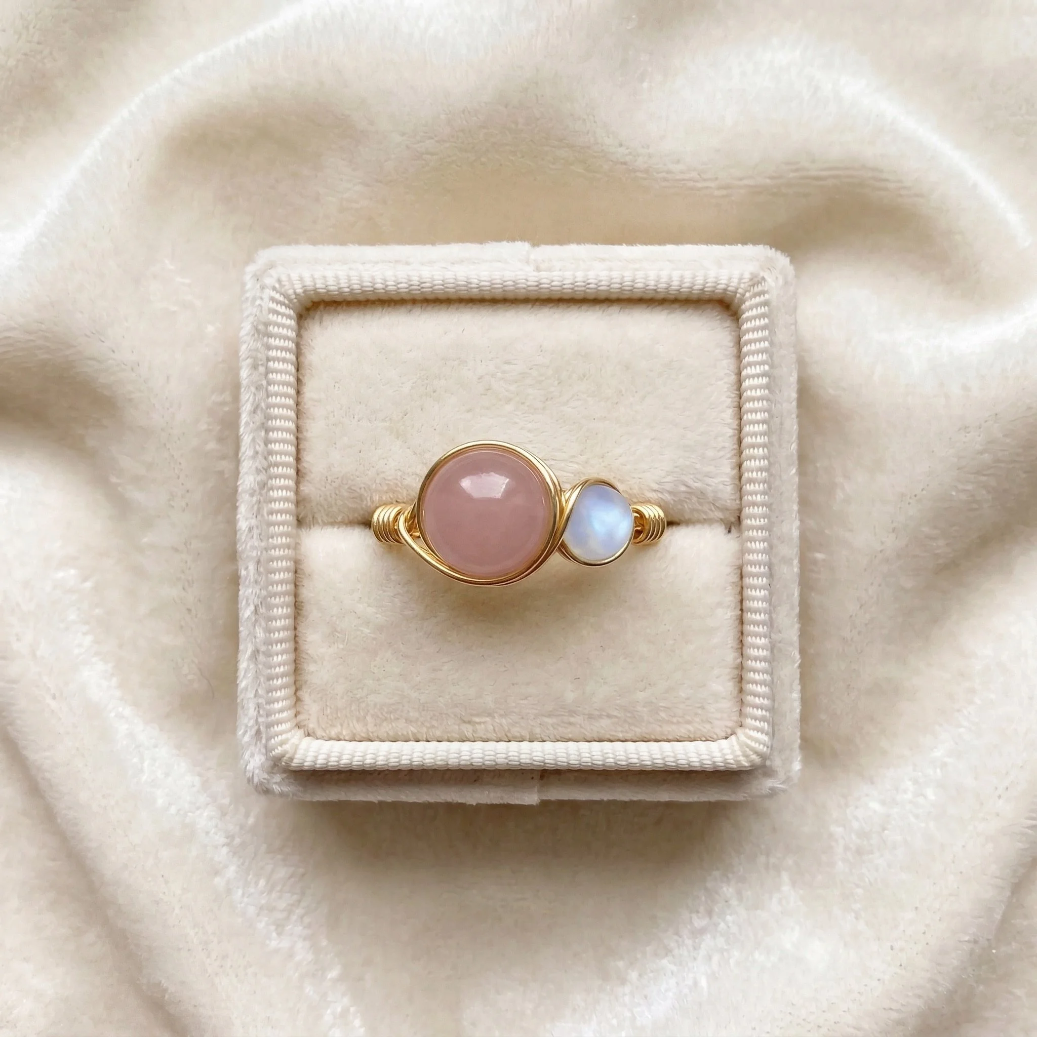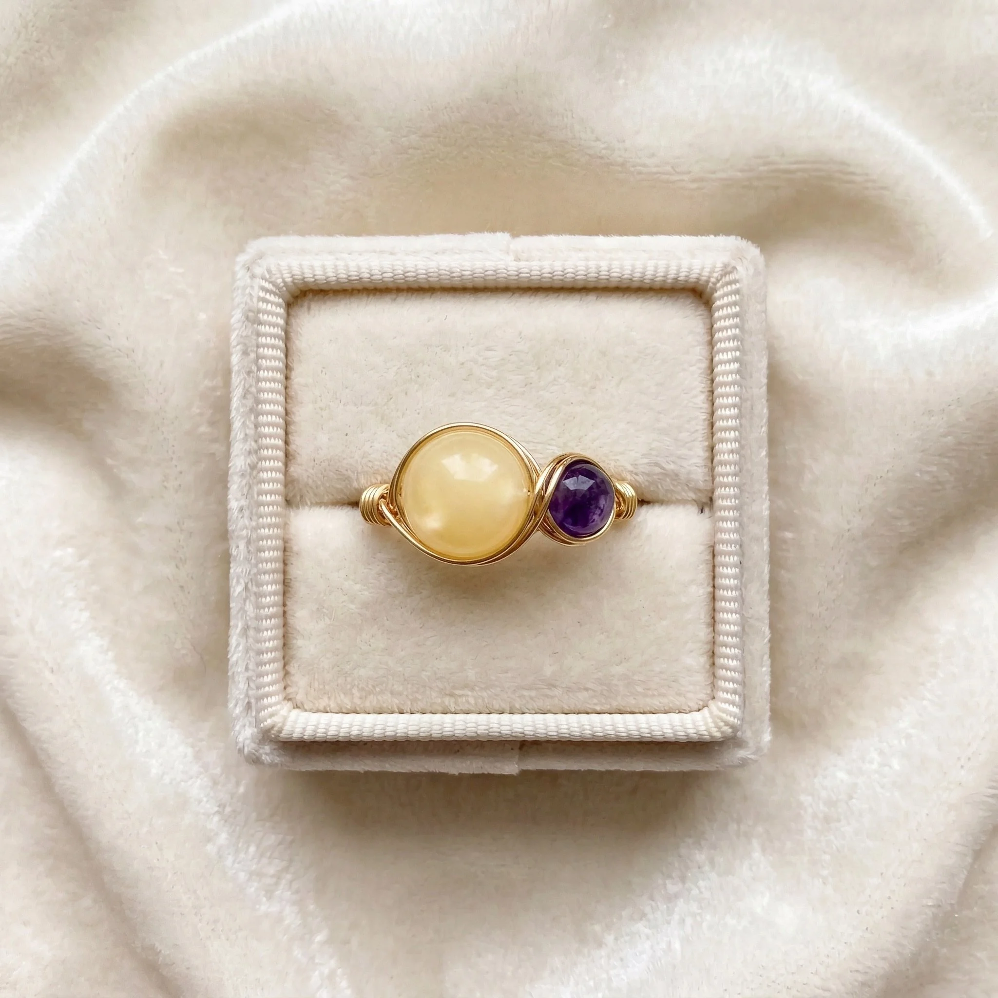 Create a meaningful ring with two crystal stones. Choose stones to represent yourself, loved ones, children, family members or special moments.